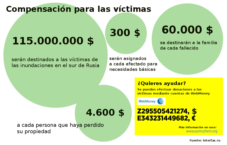 Las lluvias torrenciales que azotaron la región de Krasnodar, en el sur de Rusia, provocaron unas riadas en las que los días 7 y 8 de julio fallecieron, al menos, 171 personas. Los daños materiales han sido cuantiosos y el número de afectados asciende a 24.000. El desastre ha afectado sobre todo a la ciudad de Krimsk, de 60.000 habitantes, y a otros dos distritos situados en la costa del mar Negro: la localidad de veraneo de Gelendzhik y el puerto de Novorossisk. El presidente Vladímir Putin ha declarado que se abrirá una investigación para establecer responsabilidades y para aclarar las circunstancias por las que murieron tantas personas. Además, el mismo fin de semana fallecieron 14 rusos en un accidente de tráfico en Ucrania, por lo que el 9 de julio se ha declarado día de luto nacional.